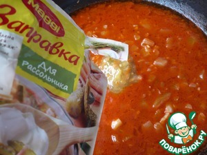 За 5 минут до готовности в соус добавляем заправку для рассольника, MAGGI. Все перемешиваем.
