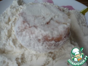 Теперь подготовим кляр: яйцо взбиваем вилкой, добавим томатную пасту и черный молотый перец. В отдельную миску насыпаем муку.