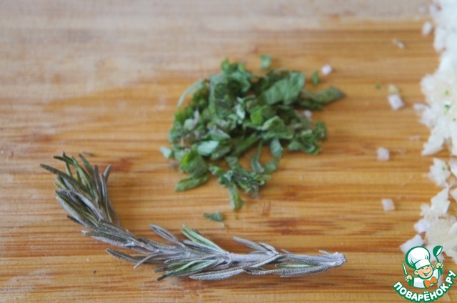 Подготовить мяту и шалфей. Мне не удалось найти свежий шалфей, даже на рынке не было. Долго думала, что сделать: взять сухой или заменить чем-нибудь. Решила заменить розмарином.