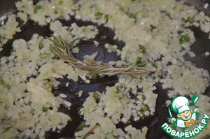 В сковороде нагреть 2 ст. л. оливкового масла и спассеровать в нём лук, чеснок и мяту до мягкости.