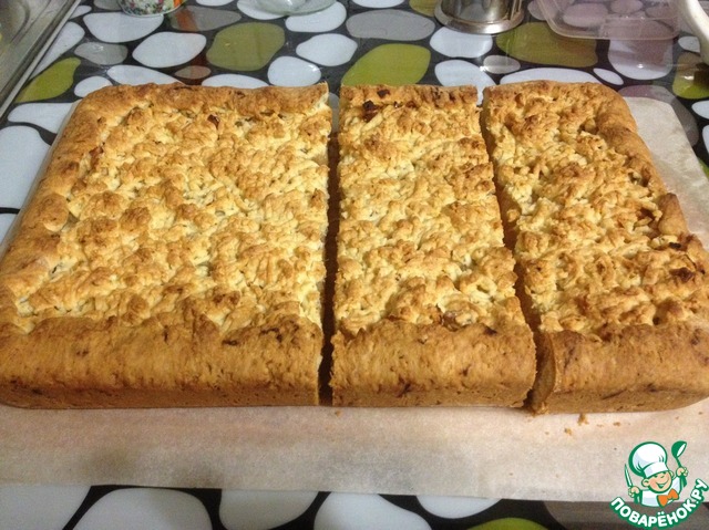В рецепте предлагается использовать форму 20х30 см, но у меня все тесто в такую форму не поместилось, нужна немного побольше. Можно взять круглую форму d 24-26 см.