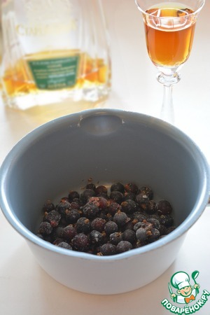 Смородину поместите в сотейник, в котором будете готовить соус, влейте коньяк