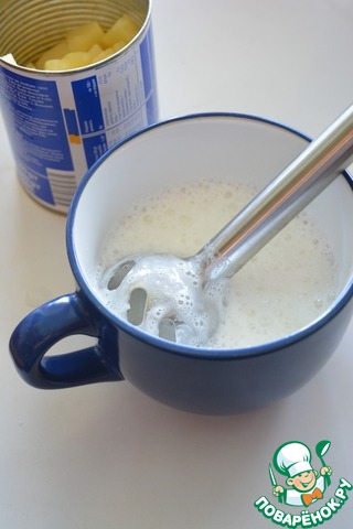 В этот сироп добавьте 1 ст. л. кусочков ананасов и пробейте это всё блендером, чтобы получилось подобие сока с мякотью