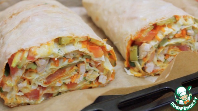 [+4]Лаваш у меня очень тонкий, его не видно среди начинки.