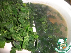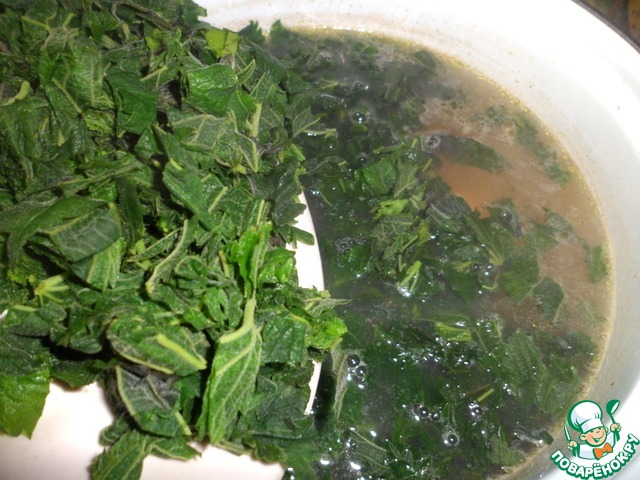 И добавляем крапиву. Варим минут пять. Крапива придает интересный вкус и к тому же очень полезна.