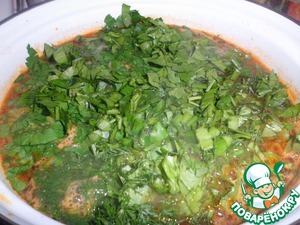 • Тем временем нарезать зелень, щавель, стебли зеленого лука, укроп, петрушку.