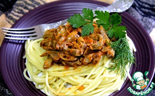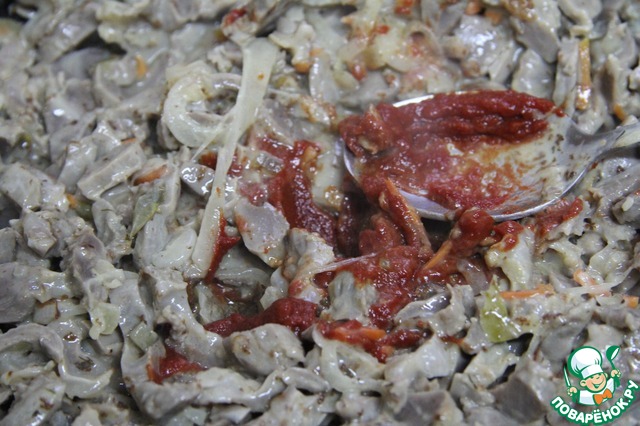 Уже приготовила,получилось очень вкусно и кисло-томатная подлива,как раз в тему!!! PS:И читайте внимательно,желудочки отварные нарезанные соломкой!!!