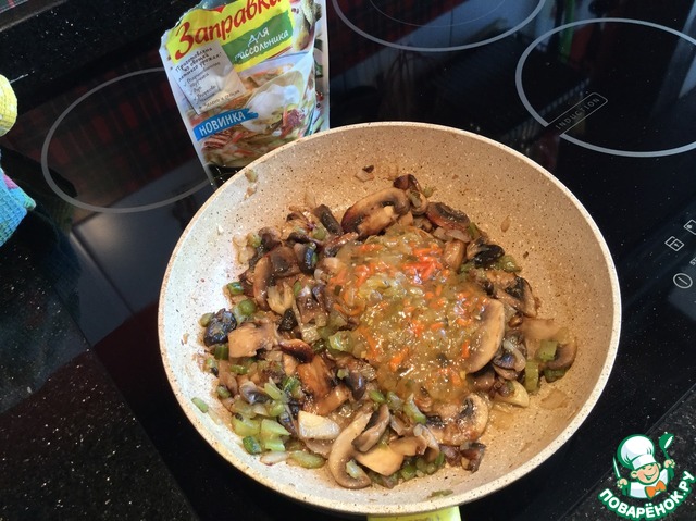 Добавьте заправку Maggi для рассольника, хорошо перемешайте. Начинка готова.