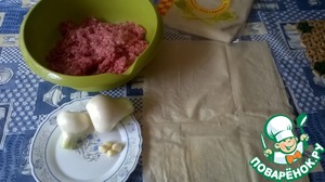 - Фарш мясной (все зависит от количества листов теста) — 600 г