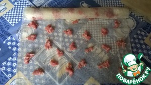 Таким образом завернуть и сложить все листы один к одному в форму, смазанную подсолнечным маслом. И сверху побрызгать маслом, щеткой или рукой распределить по всем рулетам.