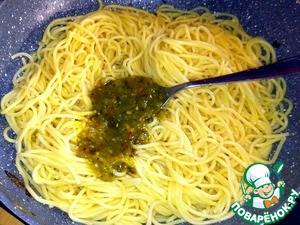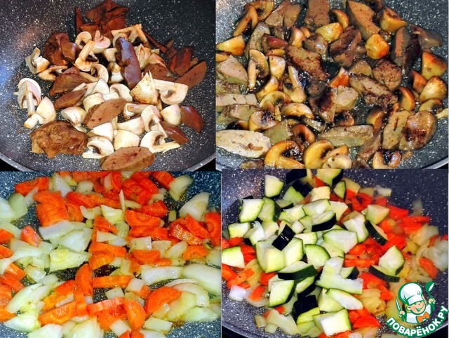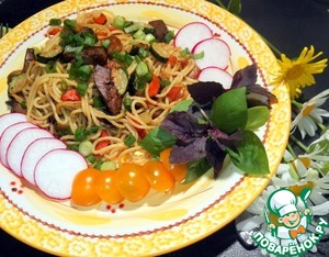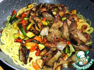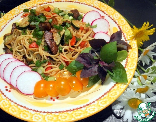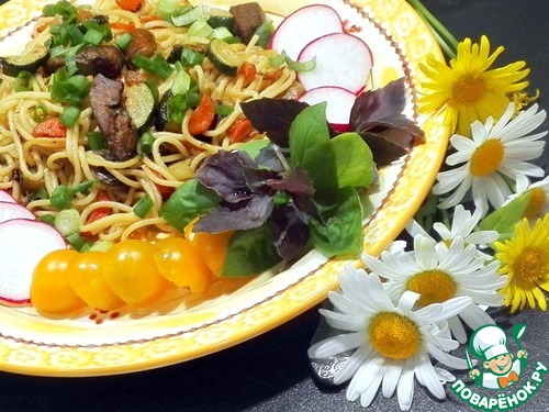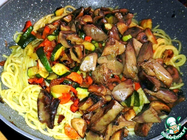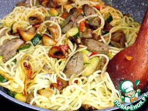 Рецепт «Спагетти с печенью и шампиньонами»: