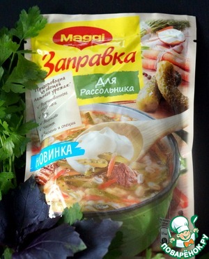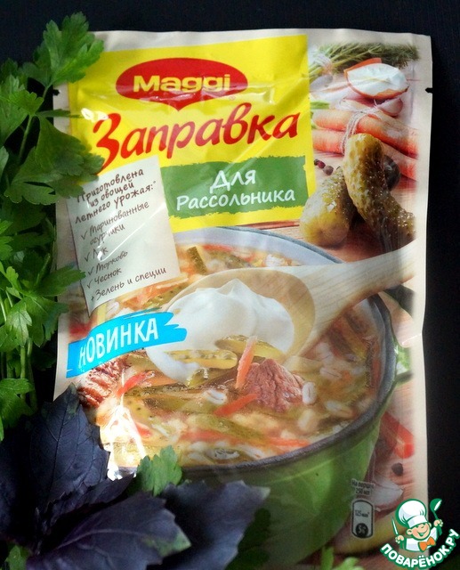 - Заправка (ТМ Магги для рассольника) — 1 пакет.
