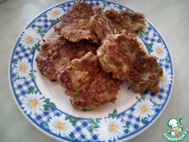 Рецепт «Оладьи из кабачков с индюшиным фаршем»: