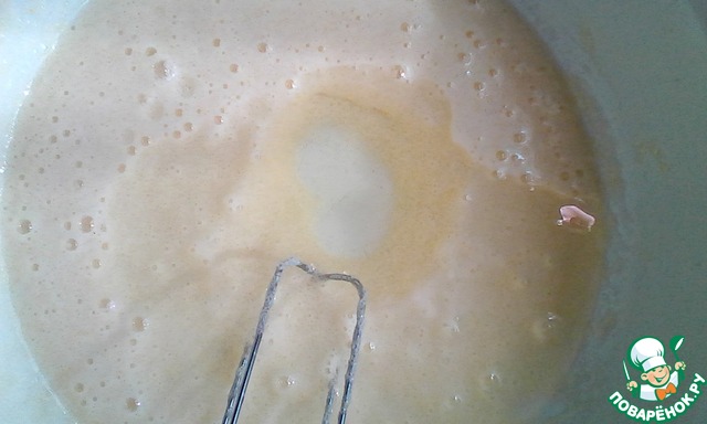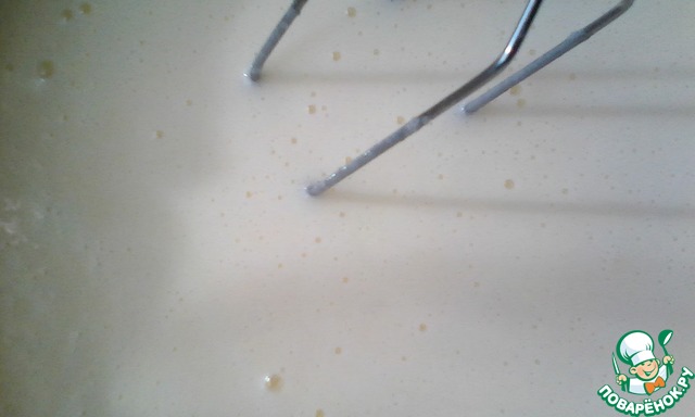 По немногу добавляем муку и разрыхлитель теста, и продолжаем взбивать. Тесто готово!