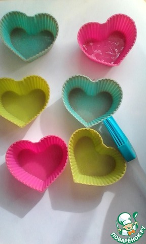 На дно каждой формочки выкладываем по 1 ст. ложке теста.