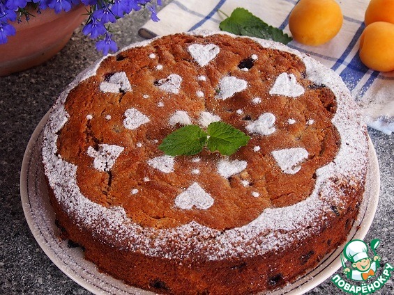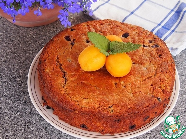 Готовый пирог остудить, вынуть из формы и подавать, украсив фруктами...