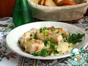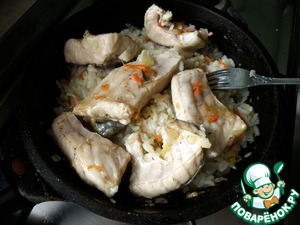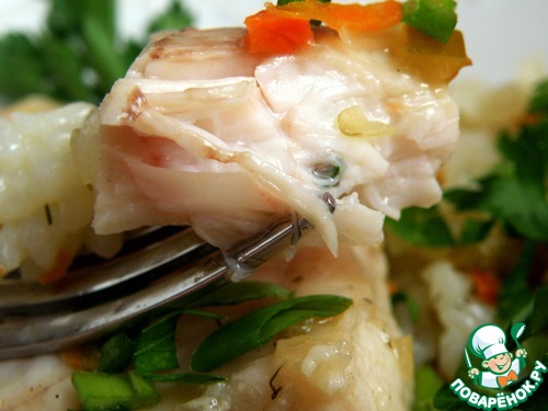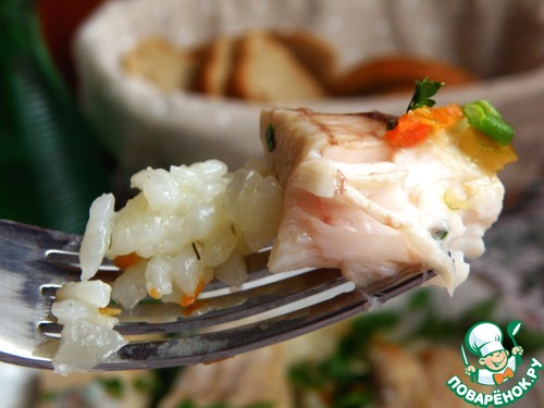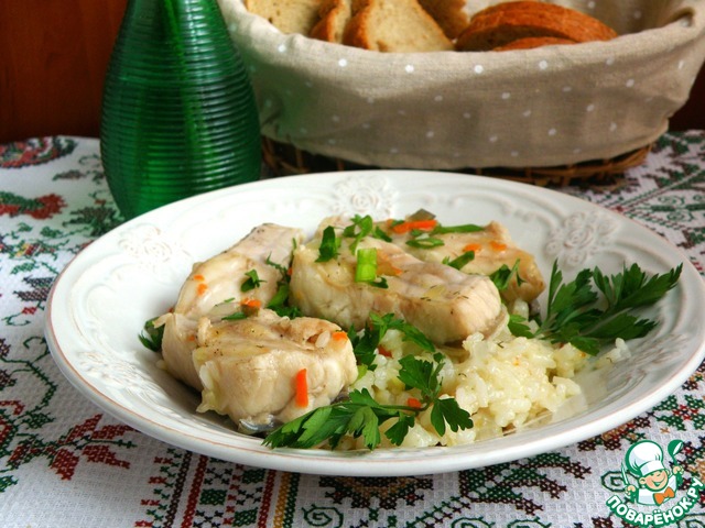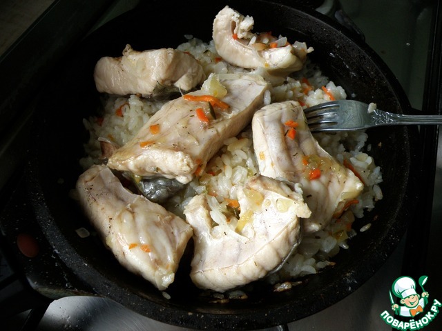Подавать, щедро присыпав зеленью. Нежнейшая рыба и островатый насыщенный по вкусу рис!