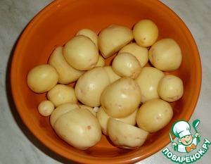 Молодой картофель очищаем от шкурок и хорошо промываем под водой.