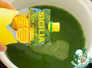 Марлю сложить в 4 слоя и через неё процедить получившуюся зелёную жидкость в кастрюльку.