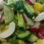 - Горошек зеленый (консервированный) — 6 ст. л.