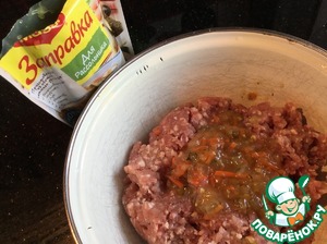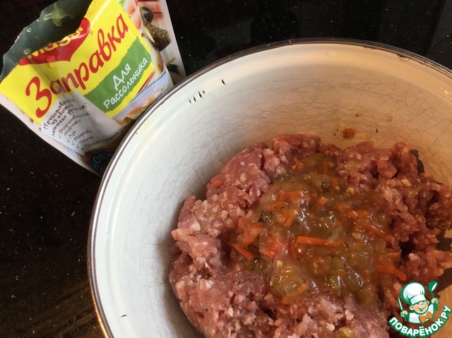 Хорошо смешайте фарш с заправкой Maggi для рассольника.