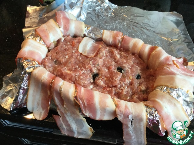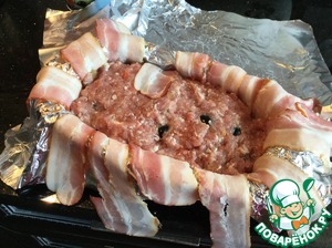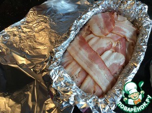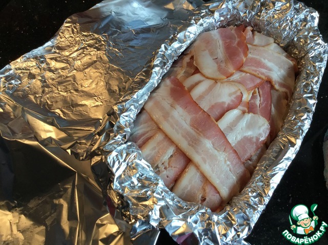 Закройте свисающими краями бекона. Накройте фольгой и запекайте в предварительно нагретой до 170 градусов духовке 1 час.