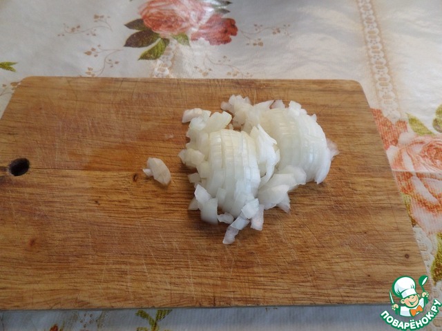 Лук нарезаем мелким кубиком.