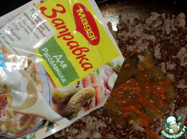 Добавляем заправку "Для рассольника" ТМ "MAGGI ". Перемешиваем.