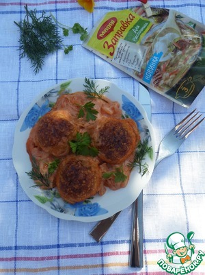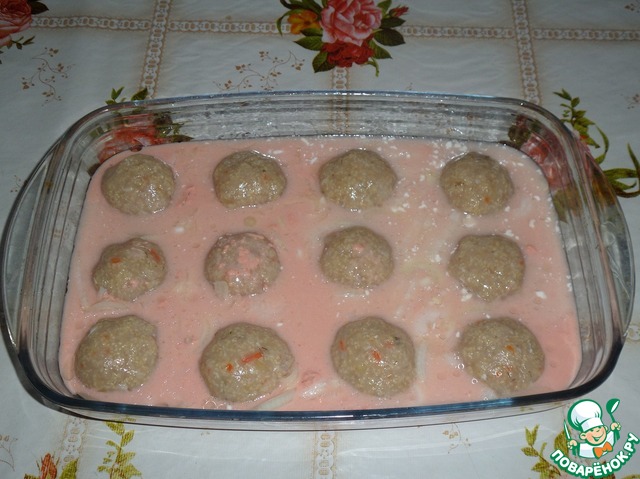 • Добавляем приготовленный соус в форму с тефтелями. Ставим форму в разогретую духовку.