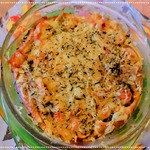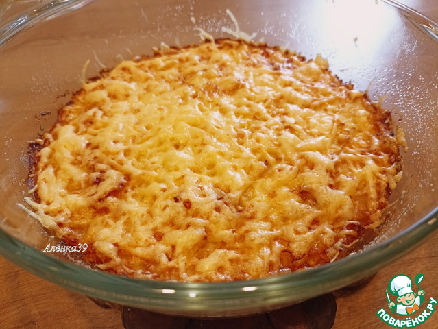 Запекать в духовке при 190 градусах примерно 50 минут под фольгой, затем фольгу снять (при желании можно запеканку посыпать тертым твердым сыром и запекать ещё 10 минут).