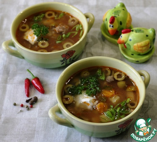 Хочу угостить вас интересным рассольником, в котором вместо огурцов добавлены оливки. Изюминкой блюда служат оливки, придавая ему богатый вид и характерные вкус и аромат. Очень получилось вкусно. Соль не добавляла, ее достаточно в заправке для рассольника Магги и оливках.