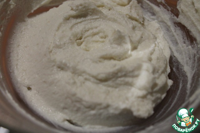 Рикотту взбиваем с 2 ст. л. пудры и ванильным сахаром.