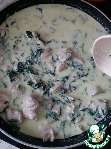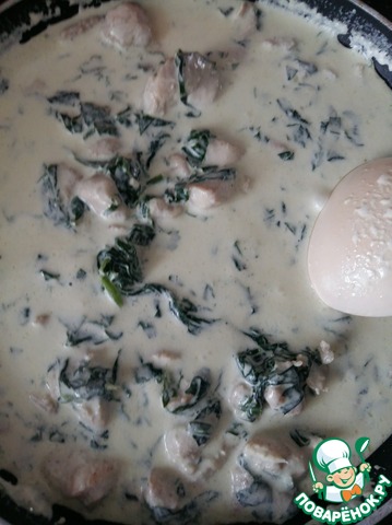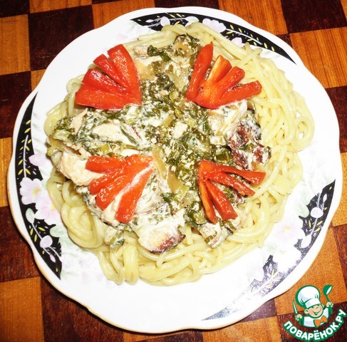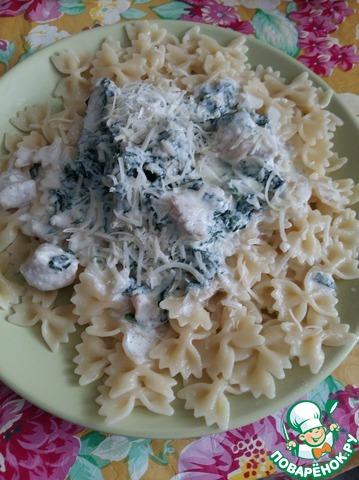 Рецепт «Паста с курицей и шпинатом в сливочном соусе»: