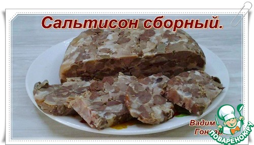 По сути это даже и не сальтисон и не зельц, потому что приготовлен не из свиной головы, но другого названия я не отыскал, а придумывать – только непонятки создавать, да себе лишние заботы обрести – объяснять, почему так назвал. Приготовить то хотел сальтисон, но свинячої голови в магазине не оказалось, вот и пришлось выкручиваться.