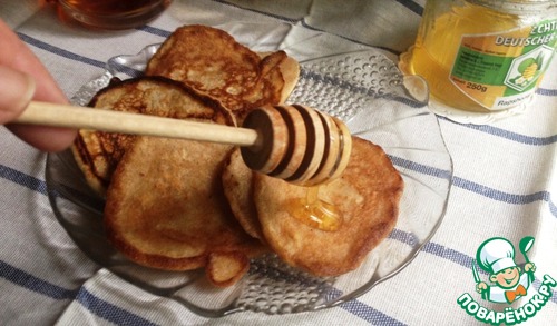 Традиционно на завтрак в выходные дни я пеку блинчики, сырники или оладушки. Сколько разных я уже напекла!!! Недавно появился в продаже у нас новый продукт - пахта. Продукт новый для сына. А поскольку стоила упаковка копейки, то он купил и принёс со словами "На, пробуй!" Вот и попробовала я испечь ооладушки. Подавала их с мёдом. Нам они очень понравились. Сына сказал, чтобы этот зверь (пахта) теперь почаще поселялась в холодильнике. Угощайтесь!