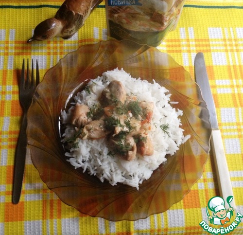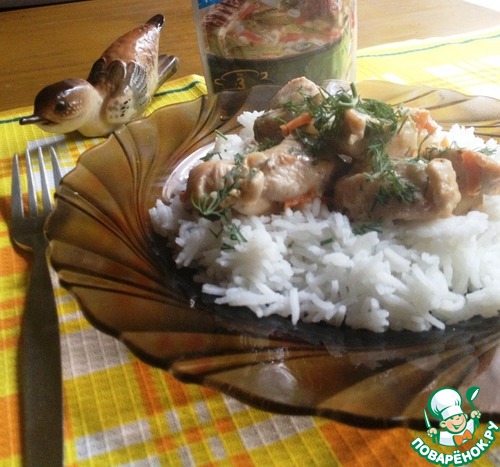 Подавать с любимым гарниром (у меня рис), присыпав зеленью.