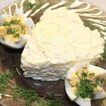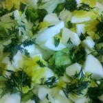 Этот салат мне известен ещё с детства. Именно в таком виде готовили его у нас дома и назывался он гордо "Салат с яйцом". С праздничной подачей я познакомилась на дне рождения у маминой школьной подруги. Как же гламурно выглядел старый знакомый! О праздничной подаче я расскажу, а покажу так, как готовила мама, готовлю я с небольшими изменениями.