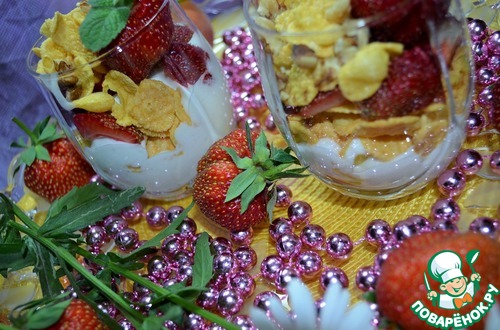 С детства любимая нами клубника в сладкой сметане. Добавив немного продуктов, мы получим красивый и очень вкусный десерт. Угощайтесь.