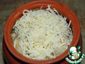 Посыпать сыром. Запекать в разогретой духовке до образования золотистой корочки, примерно 30 минут.