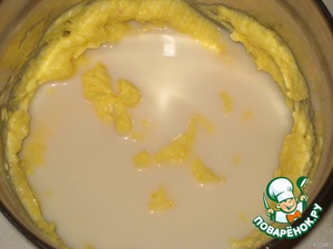 Кашу остудить и с помощью блендера, по возможности, сделать однородную консистенцию, хотя у меня все равно остались некоторые крупинки.