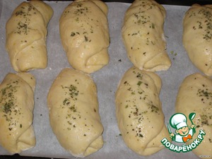 Выложить рогалики на противень, прикрыть полотенцем и дать расстояться 20-30 минут.