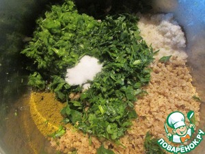 Теперь нужно все прокрутить через мясорубку: стрелки, орехи и лук. Добавить мелко порезанную петрушку, хмели-сунели, соль и растительное масло.