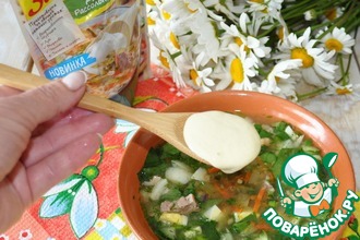 10. Перед подачей в окрошку добавить сметану и зелень петрушки.
