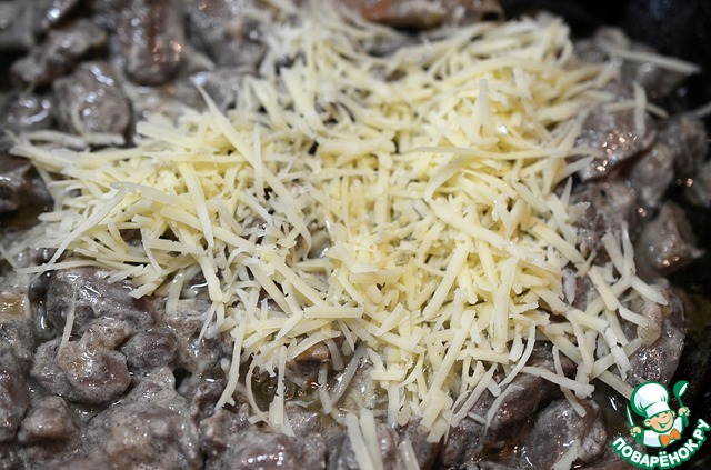Тушить около 10 минут. Добавить сыр, перемешать, подсолить и снять с огня.