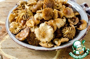 Для этого рецепта подойдут любые грибы, хоть свежие, хоть замороженные, хоть сушеные, хоть консервированные (только без уксуса), у меня опята, которые я собрала сама. Их необходимо помыть и обсушить.