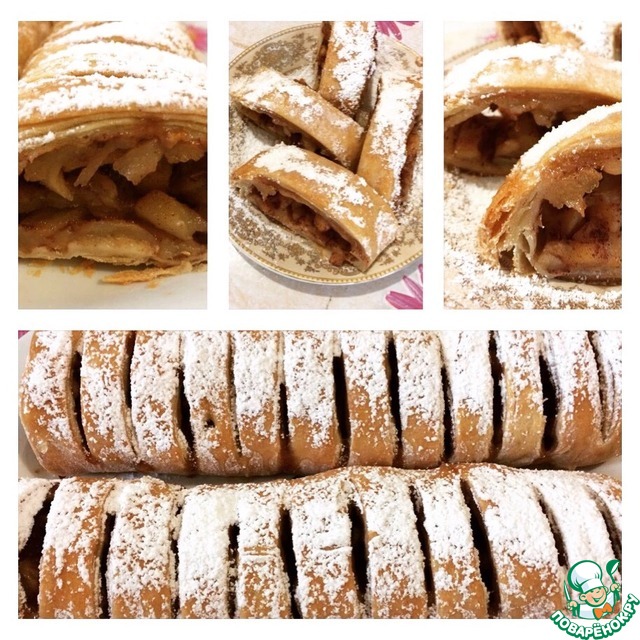 Это рецепт для тех, кто предпочитает очень простые рецепты. Собирались на дачу, надо было что-нибудь испечь. Сестренка рассказала, что в кулинарном поединке делали рулет из слоеного теста со смородиновым джемом и яблоками. Вот я и испекла. Съели быстро, всем понравилось. Во второй раз немного изменила рецепт. Замечательный рулетик.