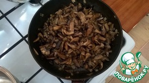 Грибы порезать пластинами и добавить их к луку. Жарить, пока грибы не станут мягкими.