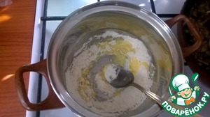 Взять кастрюлю и растопить в ней сливочное масло, всыпать в него немного муки и обжарить.