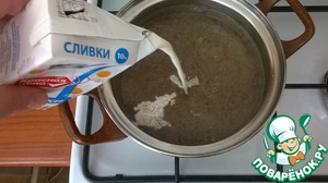 Затем влить сливки, довести до кипения и тут же снять с огня.