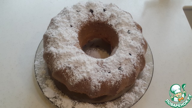 Кекс остудить 15-20 минут в форме, а затем аккуратно вынуть его, выложить на решетку и ПОЛНОСТЬЮ остудить. Перед подачей посыпать кекс сахарной пудрой.